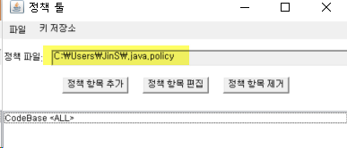 파일 저장경로는 보통 C드라이브 안에 USER 혹은 사용자명으로 되어있는데다가 .java.policy 라고 저장한다.